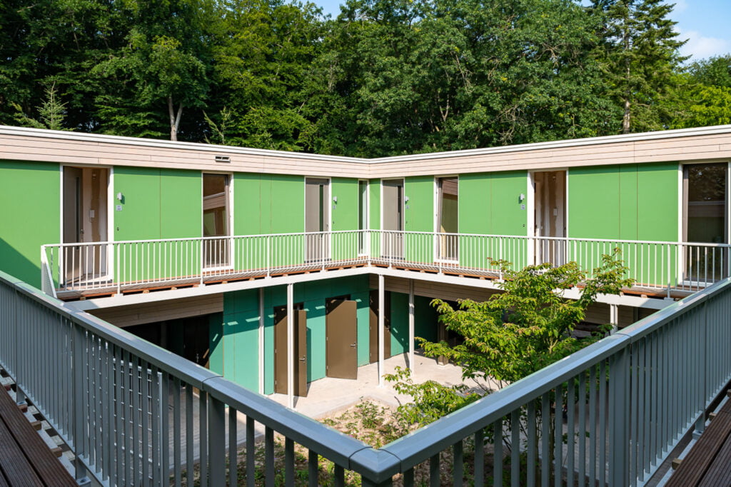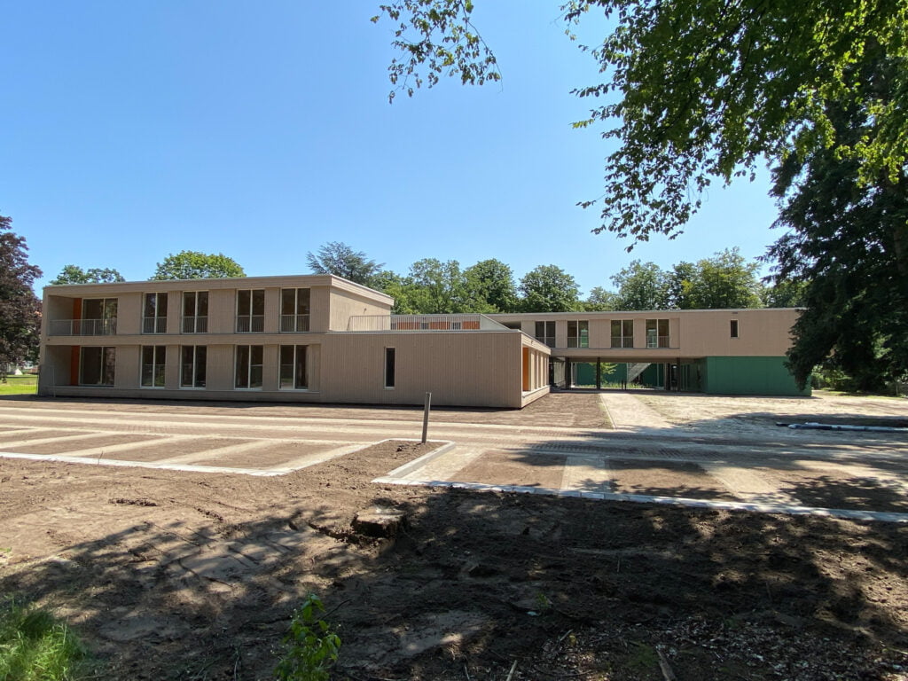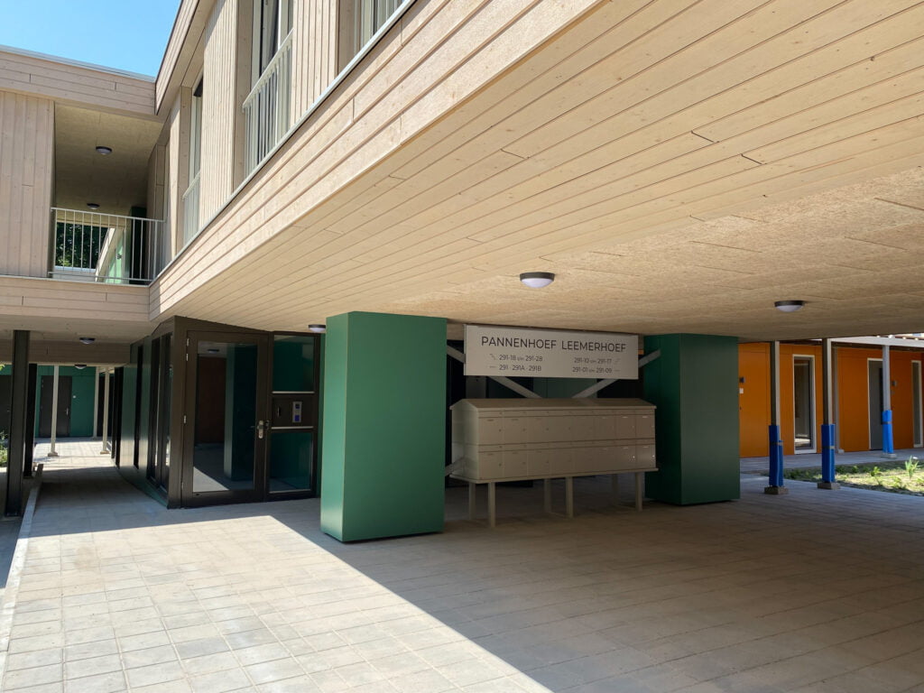 Nieuwbouw van een woon- werkcomplex gevestigd in Eindhoven, dit complex is bekleed met Vuren channelsiding delen welke een brandwerende behandeling hebben gehad en daarna op kleur zijn gebracht deze zijn bevestigd middel RVS bolkop ringnagels. Tevens is het complex voorzien van Rockpanel Colours beplating welke in drie kleuren is toegepast. De plafonds van het complex zijn deels uitgevoerd met houten delen en deels met Heraklith.